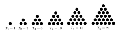 삼각수 Tn(n ≥ 1)는 [그림]에서와 같이 기하학적으로 일정한 모양의 규칙을 갖는 점들의 모음으로 표현될 수 있다.