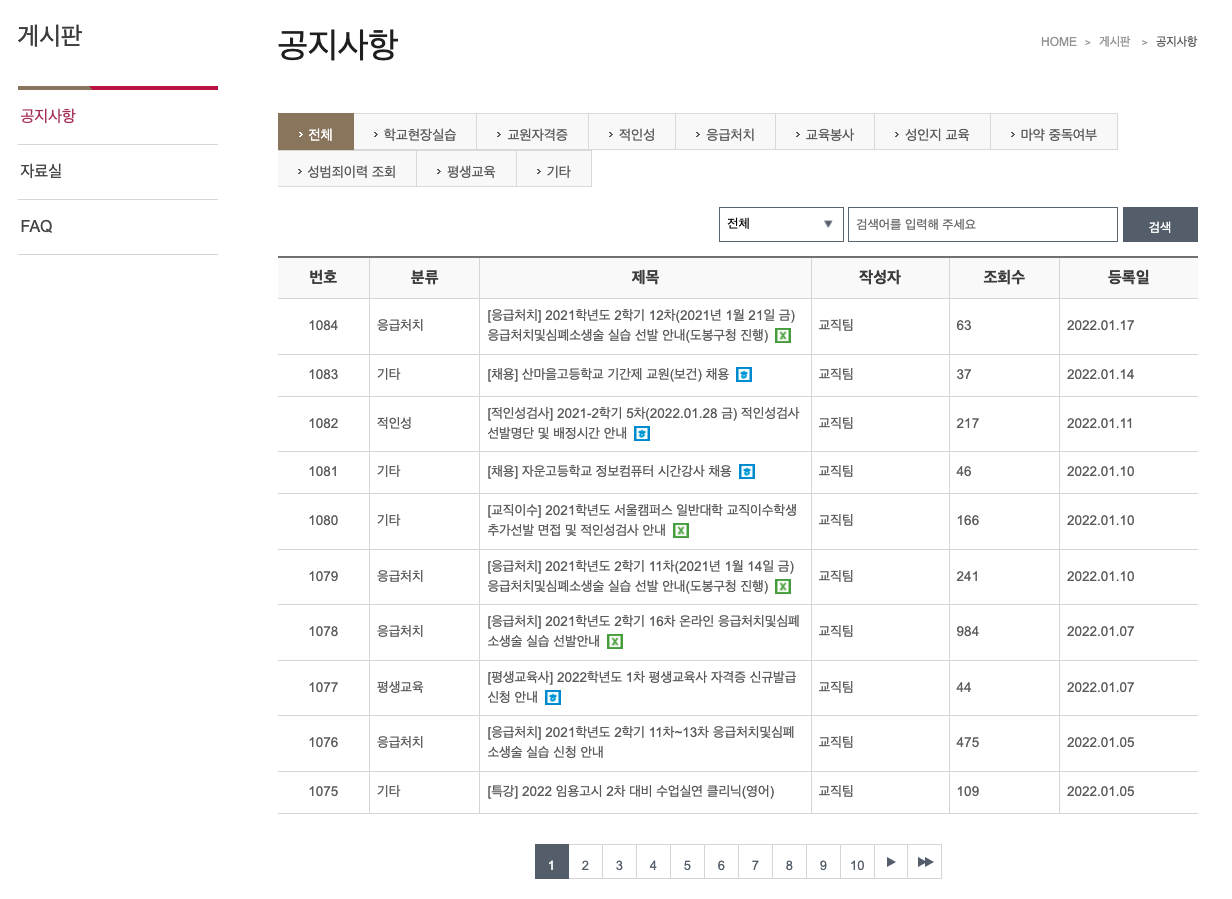 전술했듯, 필자는 사범대학에 소속되어 있다. 사범대생은 교원자격증을 취득하기 위해, 졸업 전 2회의 응급처치 교육과 2회의 인적성 검사를 수행해야 하는데, 이를 신청하는 과정은 보통 불편한 일이 아니다. 1년 약 8회의 교육이 있고, 교육 전 교직팀 웹사이트 '공지사항'에 수시로 들어가 확인해야만 교육 신청 기간을 알 수 있다. 이 말은 즉, 교육일정을 확인하기 위해 수시로 공지사항을 확인해야 한다는 뜻이며, 4년 동안 이러한 작업을 반복해야 한다는 뜻이다...