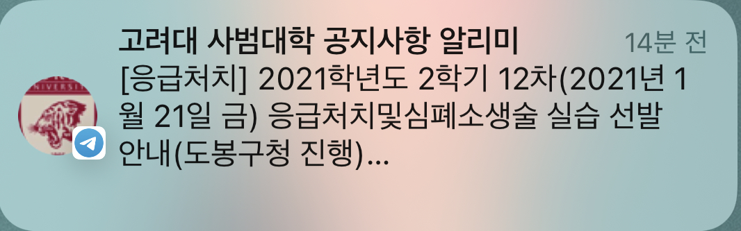다만, 카카오의 경우 액세스 토큰의 유효기간이 짧아 지속적으로 갱신해줘야 하는 수고스러움이 있었고, 공지사항 페이지도 자주 들어가기 싫어서 하는 프로젝트인데 최대한 수고를 줄이자는 생각에, 토큰 발급 과정이 간소한 텔레그램을 활용했다.