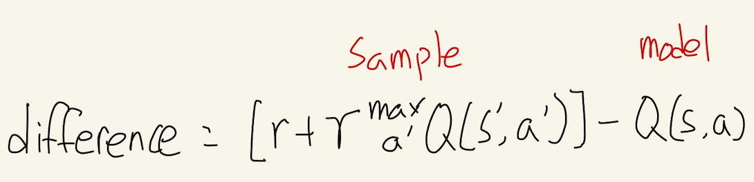 이 학습 방법을 활용하면 항상 최적의 행동 a를 취하지 않고도(초기에는 최적의 행동이 무엇인지 조차 모름) 심지어는 확률적으로 행동을 취해도 model과 sample간의 차이를 기존 모델에 반영함으로써 최적의 Q(s,a)와 V(s)를 얻을 수 있다고도 했다.