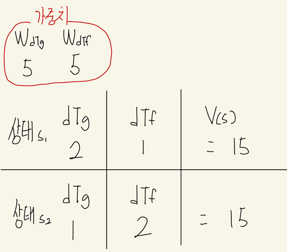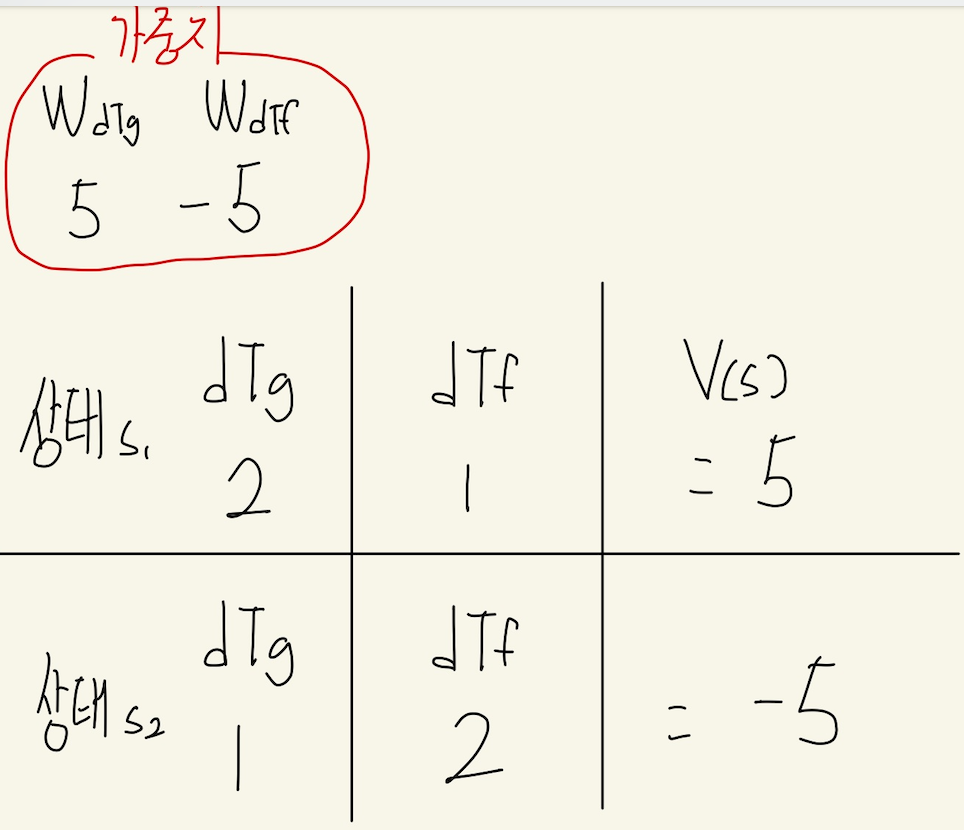위 예시에서 가중치와 각 상태 V(s)의 연관성은 무엇인지 유추할 수 있을까?